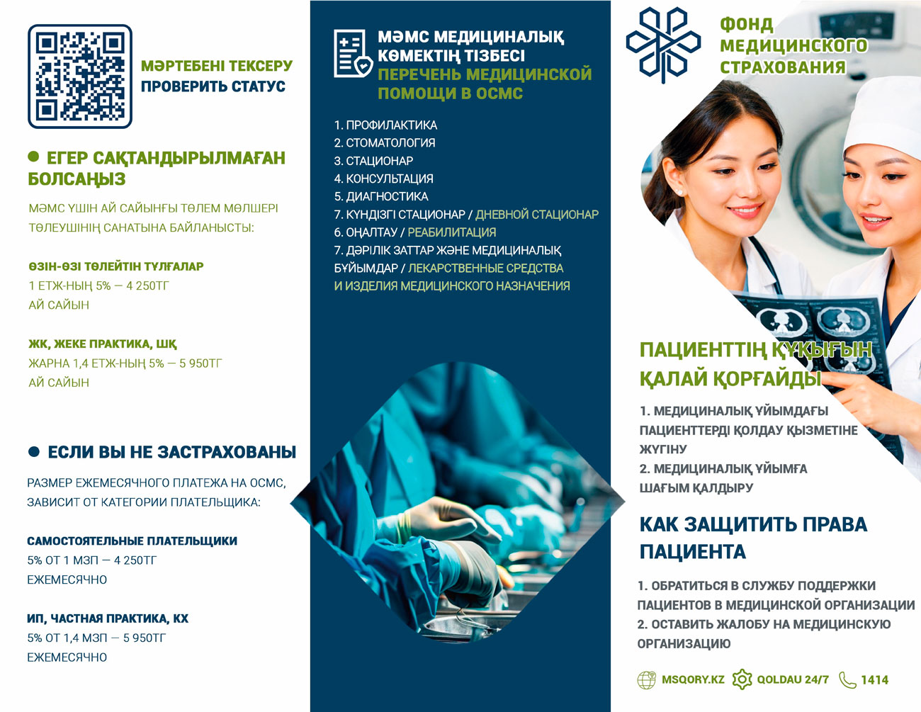 📋 Міндетті әлеуметтік медициналық сақтандыру шеңберінде: